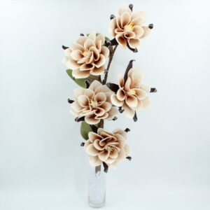Dahlia artificiale con fiore grande e realistico, disponibile in varie tonalità naturali, ideale per decorazioni d’impatto.