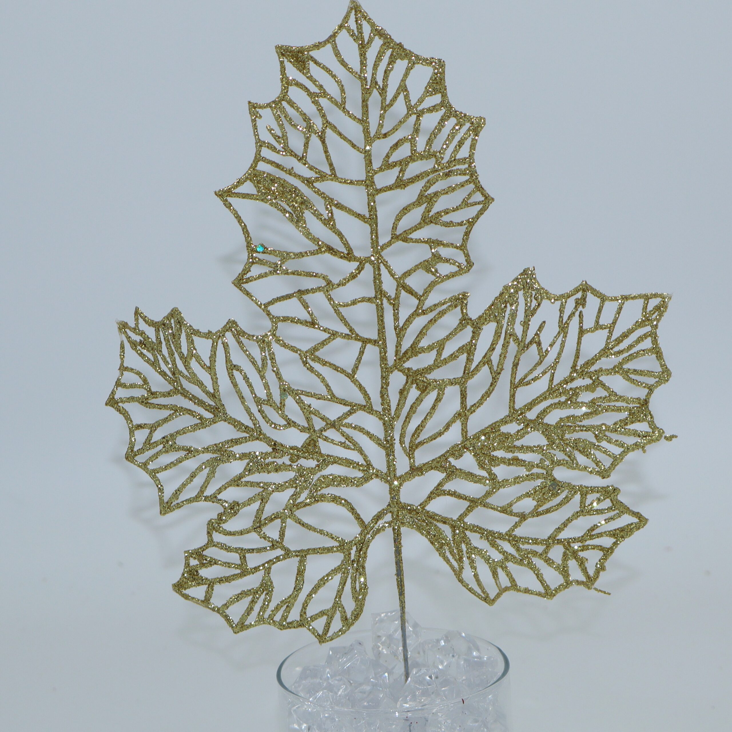 Foglia di fico ornamentale con finitura glitter, ideale per decorazioni ed elementi luminosi nelle composizioni natalizie.