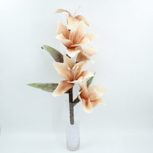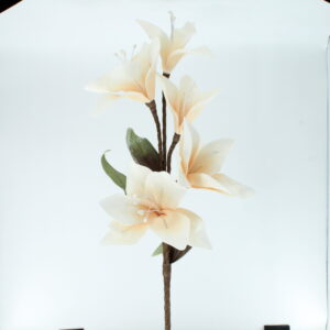 Lilium artificiale con cinque fiori realistici, disponibile in diverse tonalità naturali, ideale per composizioni eleganti e scenografiche.