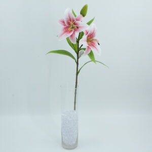 Lilium artificiale in lattice, alto 77 cm, composto da 2 fiori aperti e 1 bocciolo.