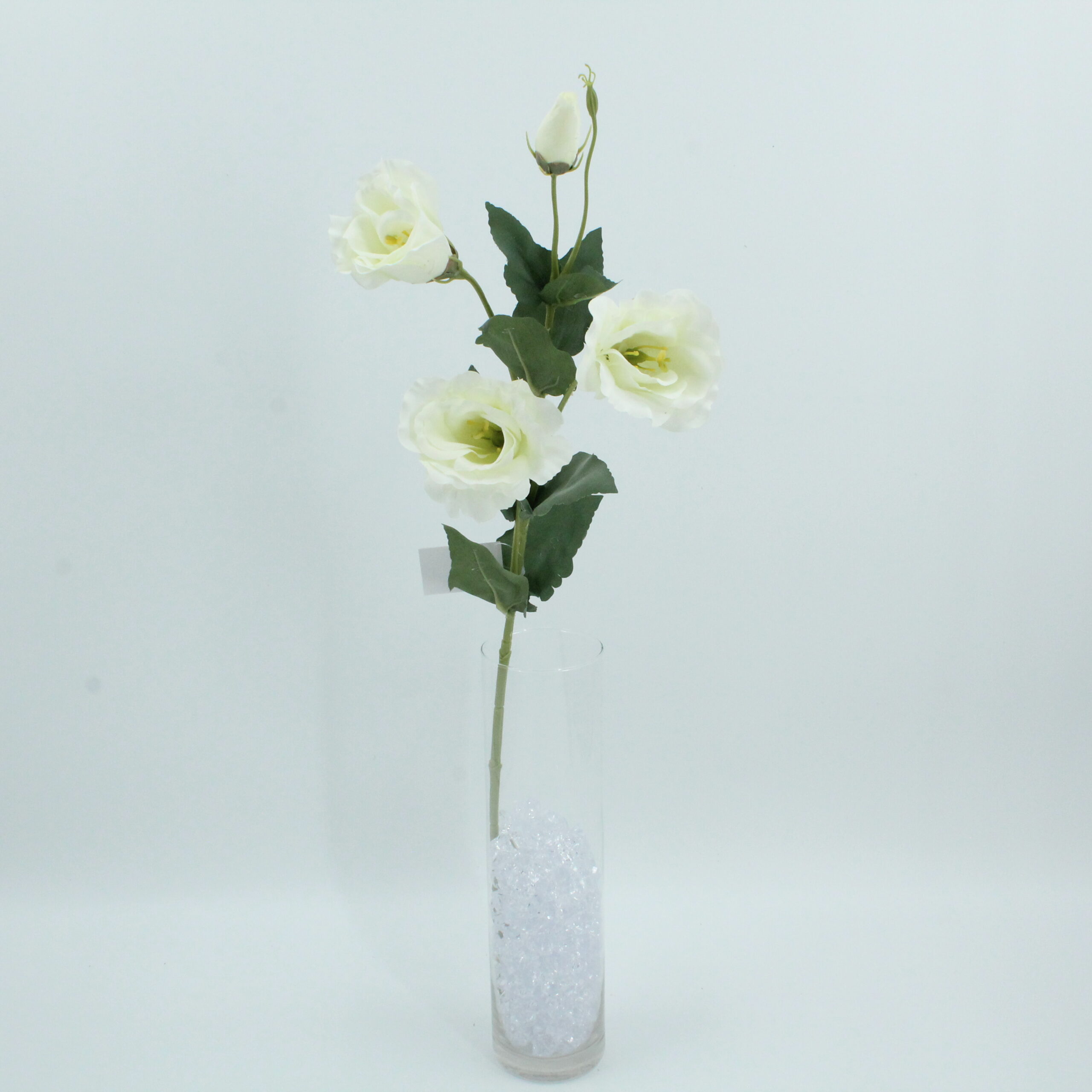 Lisianthus artificiale alto 70 cm, composto da 3 fiori e 1 bocciolo, perfettamente rifiniti nei dettagli.