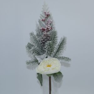 Pick decorativo invernale con rami di pino e grandi fiori di peonia, perfetto per creare allestimenti natalizi ricchi e scenografici. Aggiunge eleganza, volume e un fascino romantico alle decorazioni festive.