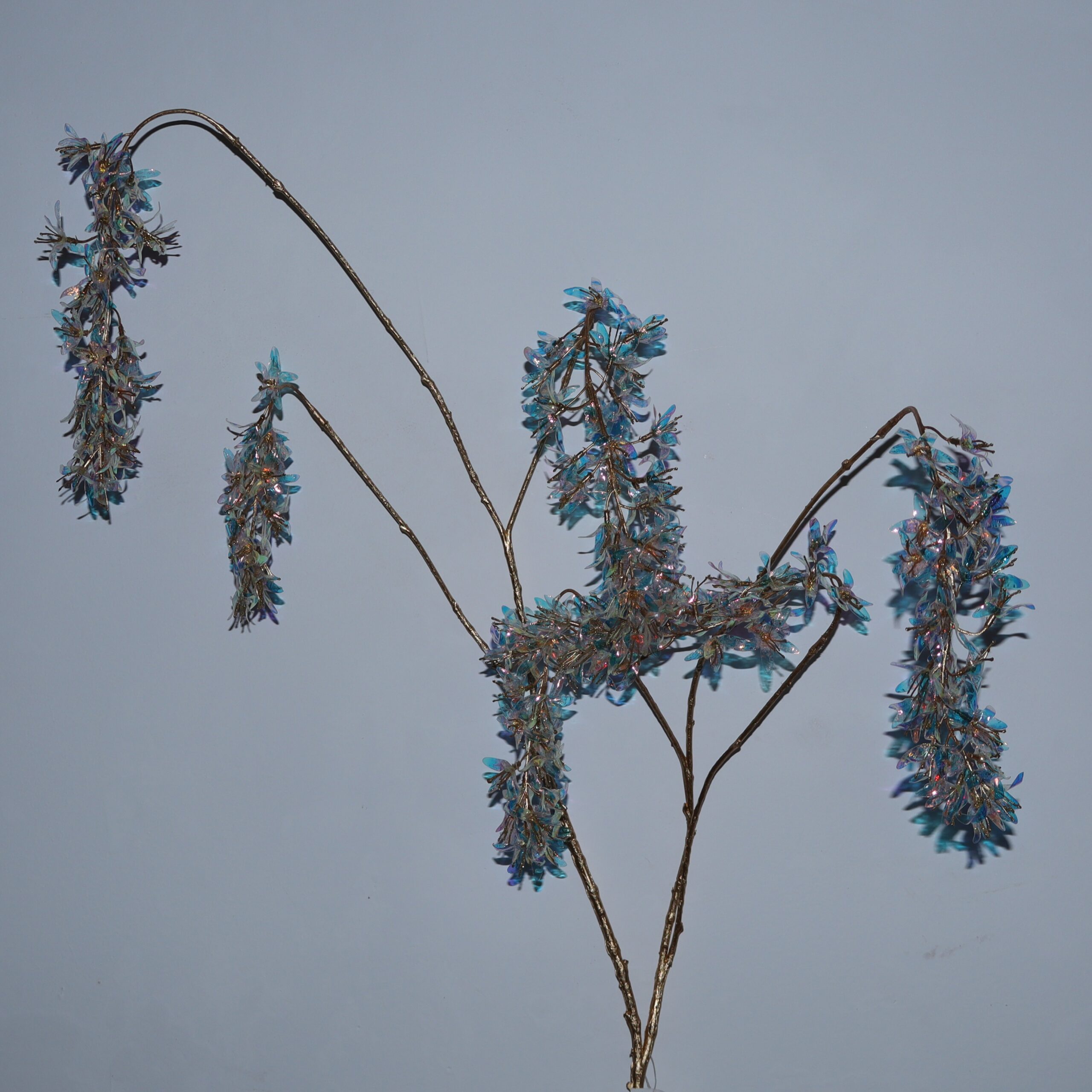 Ramo wisteria pendente iridescente lungo 133 cm, perfetto per decorazioni scenografiche e allestimenti dall’effetto luminoso.