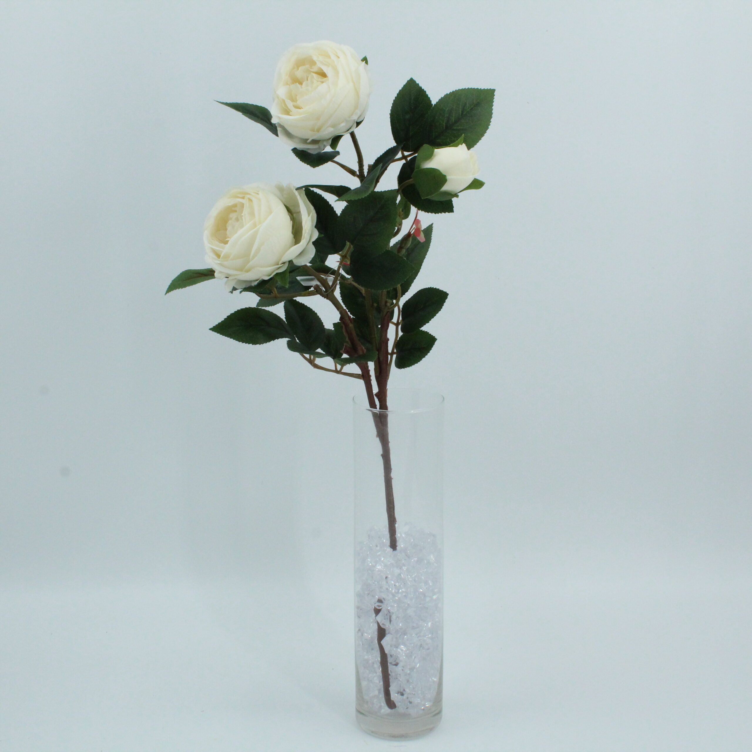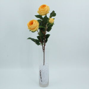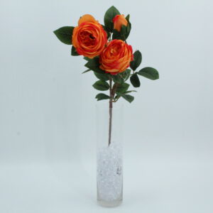 Rosa artificiale con due fiori e un bocciolo, dallaspetto realistico e raffinato. Perfetta per decorazioni eleganti e romantiche.