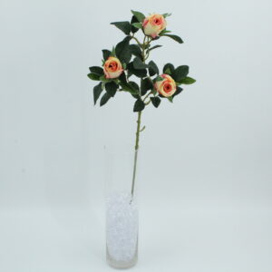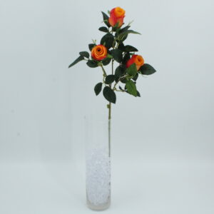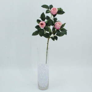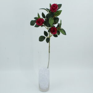 Rosa artificiale con tre fiori per stelo, dallaspetto realistico e curato nei dettagli. Ideale per composizioni floreali piene e scenografiche.