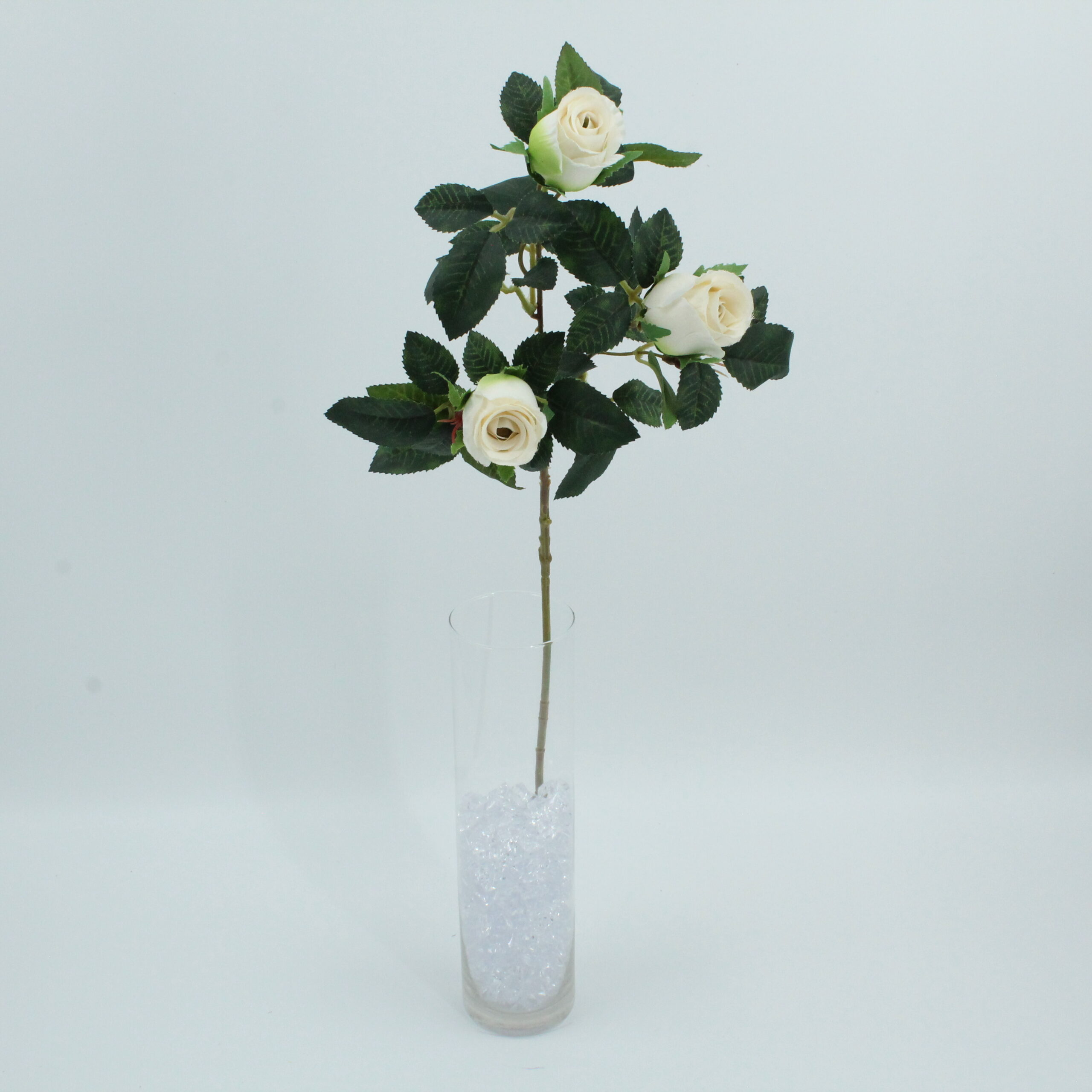 Rosa artificiale con 3 fiori per stelo, alta 70 cm, perfetta per creare composizioni ricche e naturali.