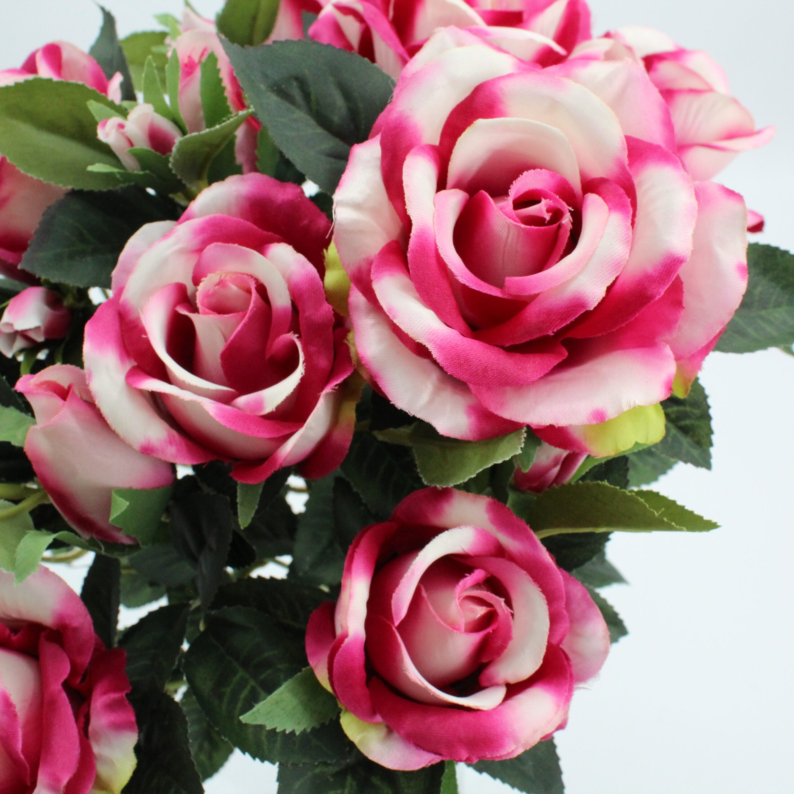Mazzo da 12 rose artificiali disponibili nelle tonalità fuxia e rosa.