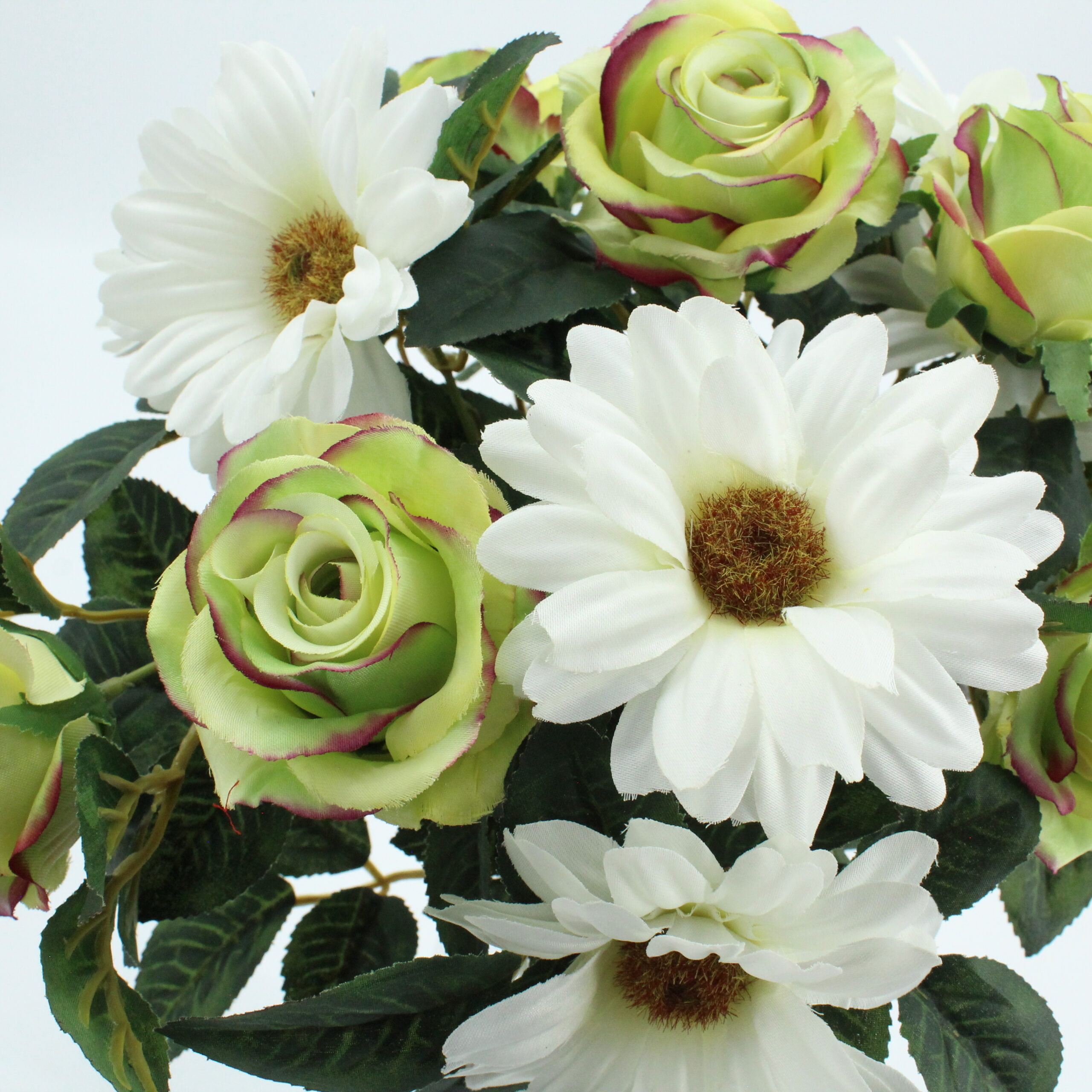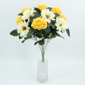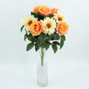 Il Rosa/Gerbera bush x12 H 50 cm combina due varietà di fiori artificiali per creare un mazzo allegro e voluminoso.